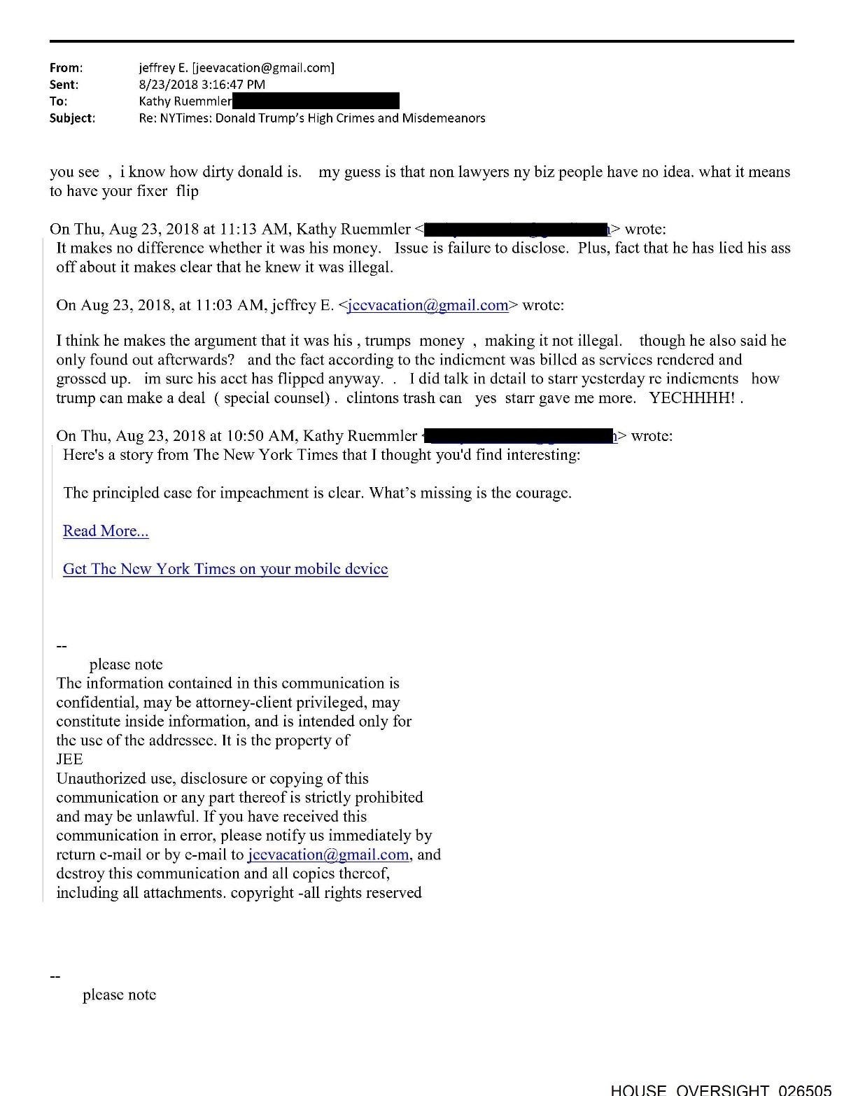 In addition, we have a new bombshell email this afternoon. This is Jeffrey Epstein, in 2018, talking about “i know how dirty donald is.”