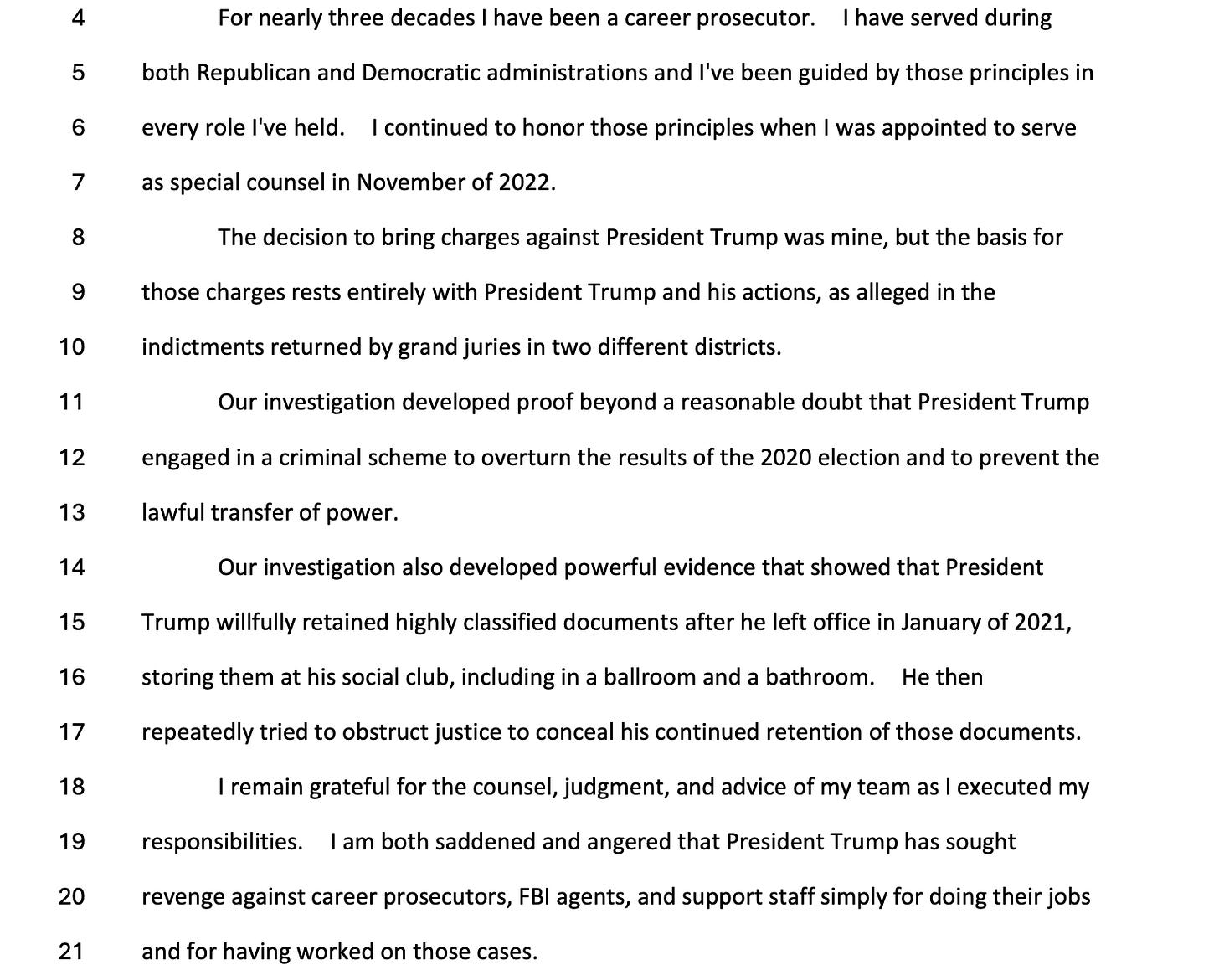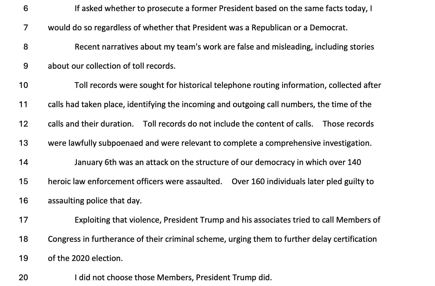Across hours of sworn testimony, Smith mounted a detailed and unapologetic defense of his prosecutorial decisions, repeatedly underscoring that the charges were driven by evidence, not politics, and that he would have brought the same cases regardless of party affiliation. I read the entire 255-page transcript so you do not have to. If you value accurate, real-time reporting grounded in primary sources, please consider subscribing to support this work. Right now it’s just me. But I have some big plans in 2026 that I cannot wait to share with you.