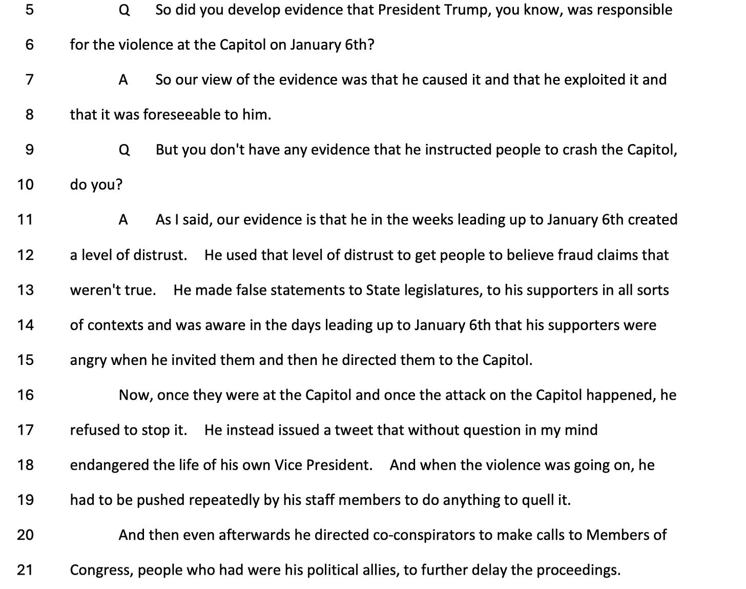 When pressed on Trump’s role in the Capitol attack, Smith testified that while Trump did not explicitly order the breach, the violence was foreseeable and exploited.