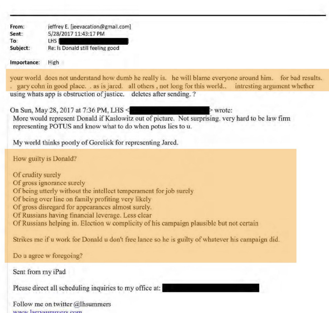 5) A Private Warning: Epstein’s May 2017 Email to Larry Summers