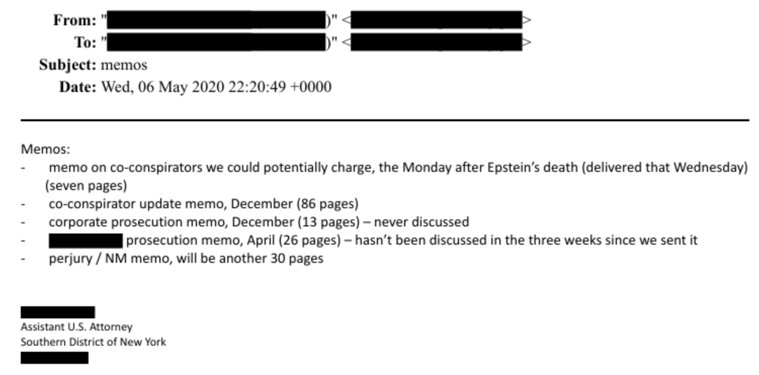 More documents show the Justice Department discussing memos concerning “co-conspirators” but these memos have not been released to the public: