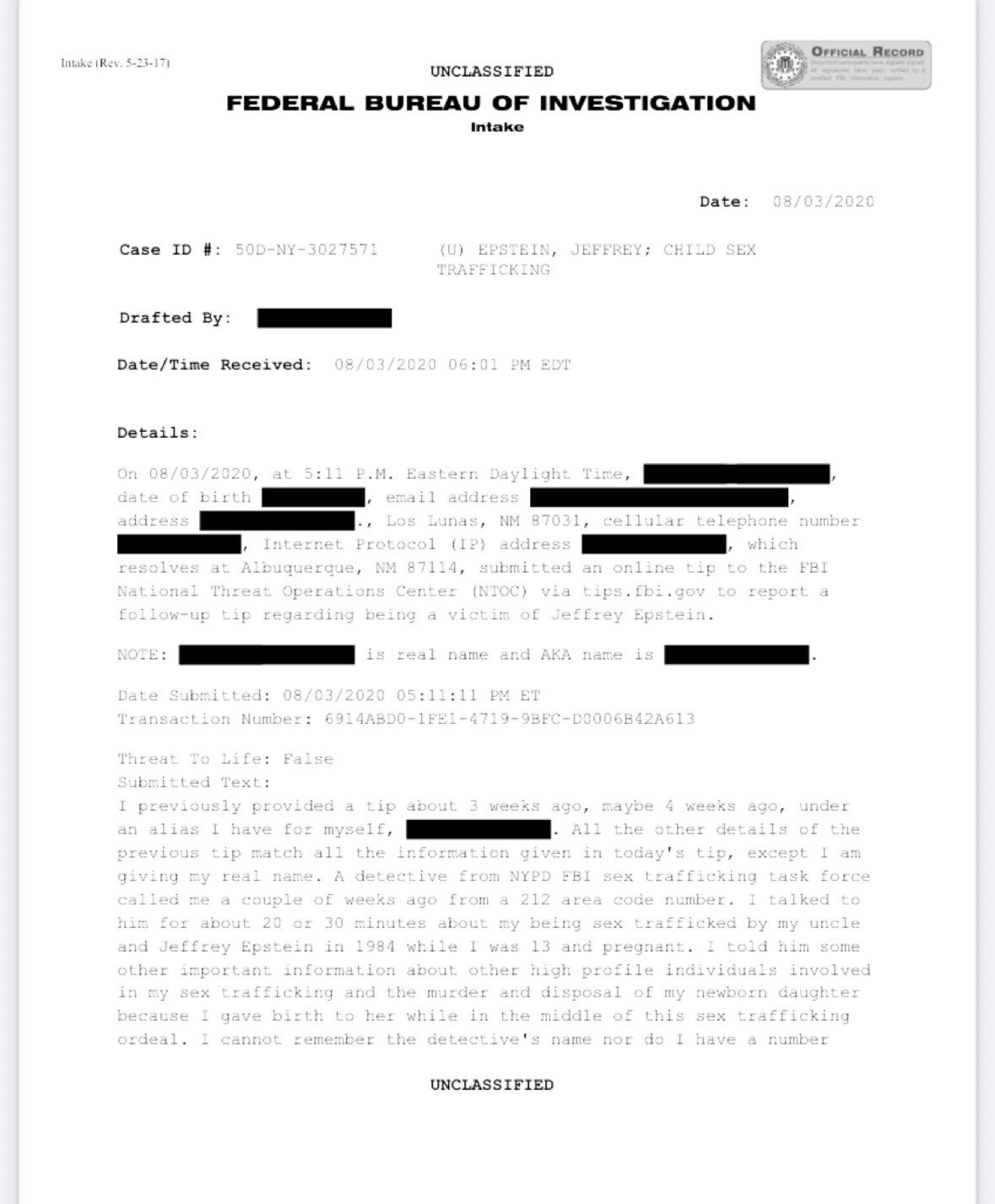 That document is a tip. It is not evidence. Tips require investigation and corroboration. The problem is not that the DOJ received such a tip. The problem is that it released the tip without context while withholding the investigative record that would allow the public to understand whether it was substantiated or dismissed, and why.