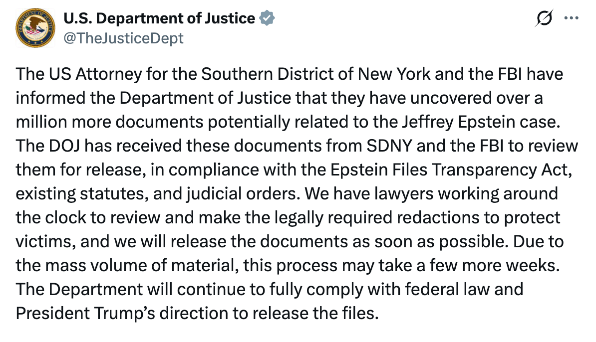 The Trump Administration has already released thousands of Epstein-related documents, many without explanation. Now it claims to have newly uncovered more than one million additional documents.