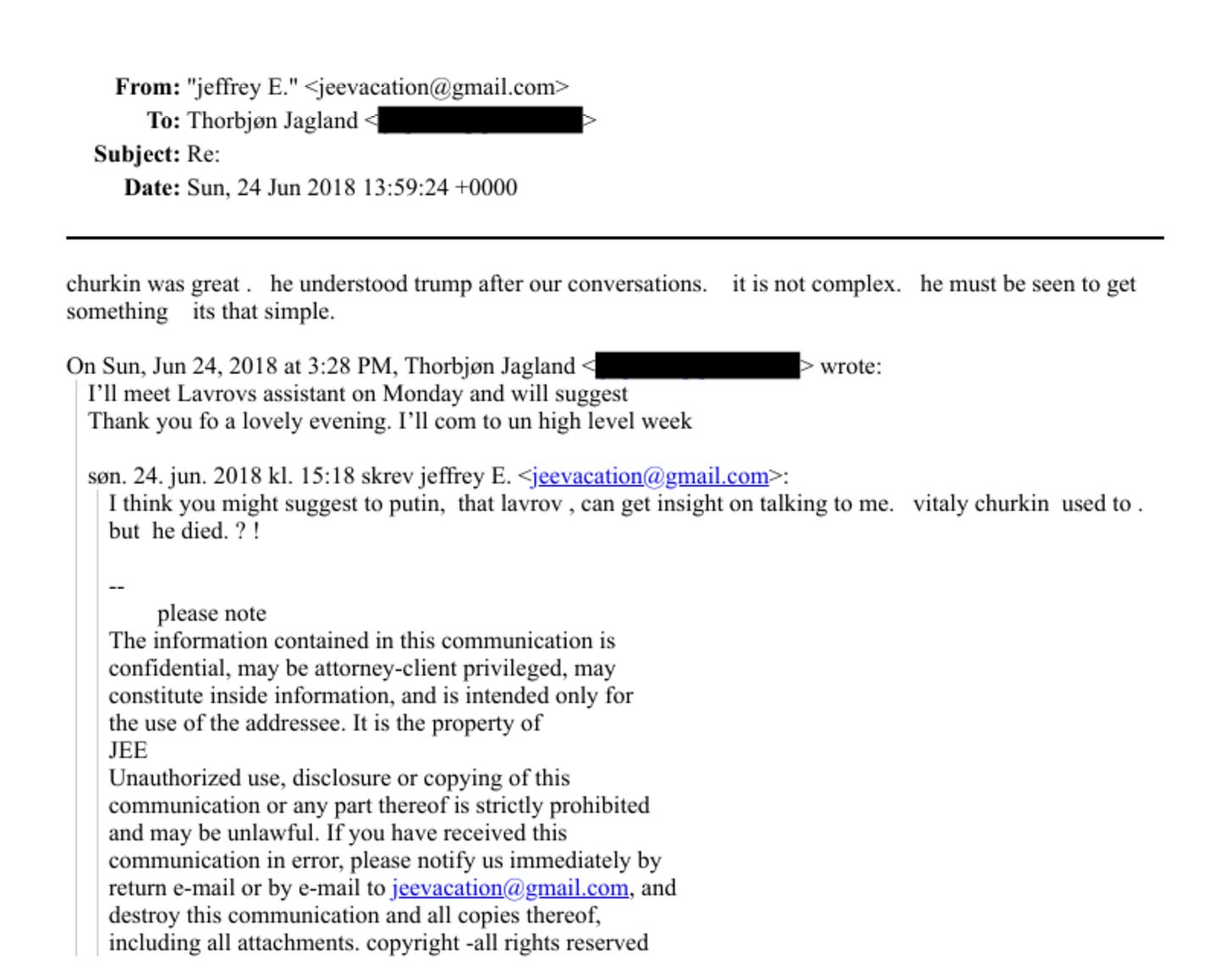 This is Epstein confirming that he discussed Donald Trump with the Russians: “Churkin was great. he understood trump after our conversations” Full file here.