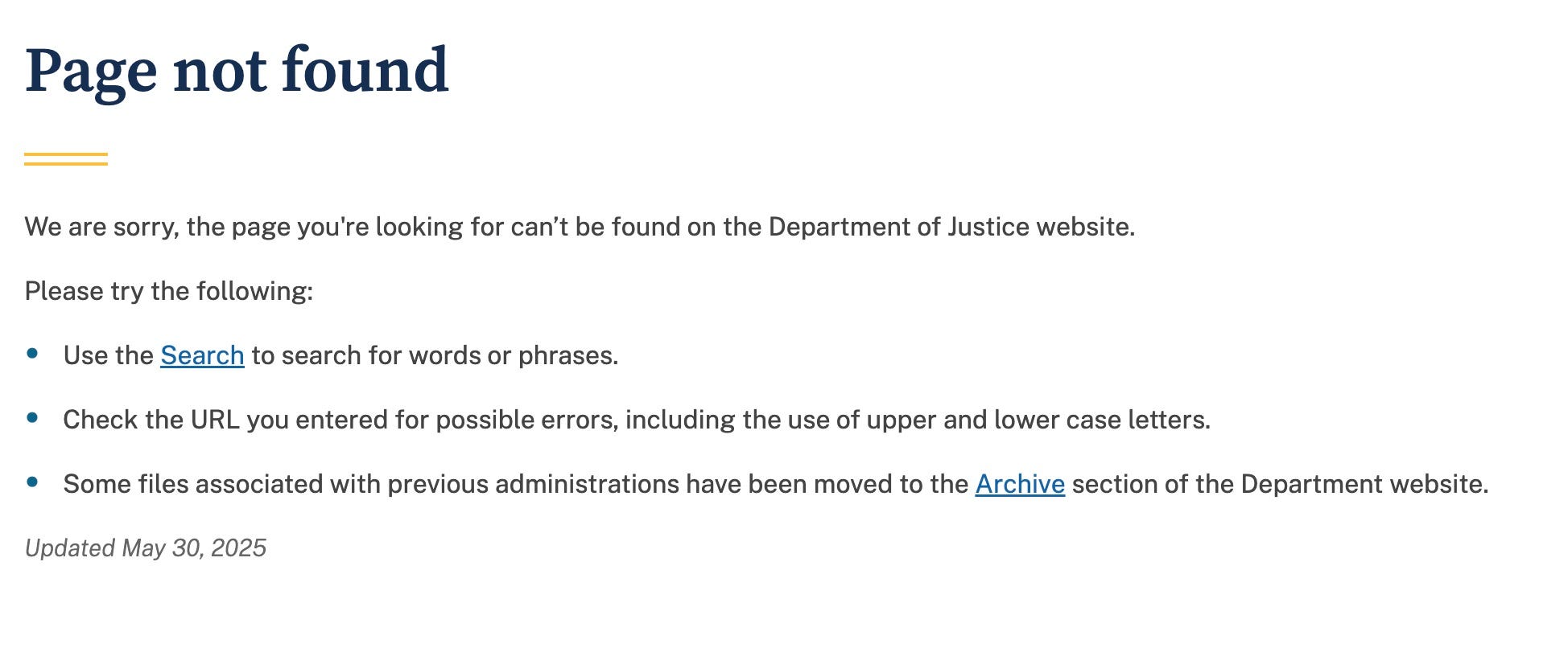 The DOJ is now taking down files that I emailed over to their tip line that they failed to properly redact. I have saved the files on my computer in case the DOJ just decides to wipe them completely.