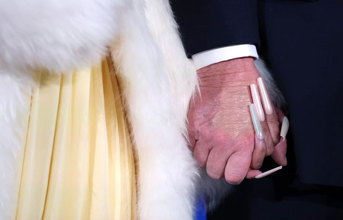 A photo of President Trump holding hands with Nicki Minaj appeared to show concealer on his hand, reigniting speculation about recurring discoloration that the White House has previously attributed to frequent handshaking rather than health issues.