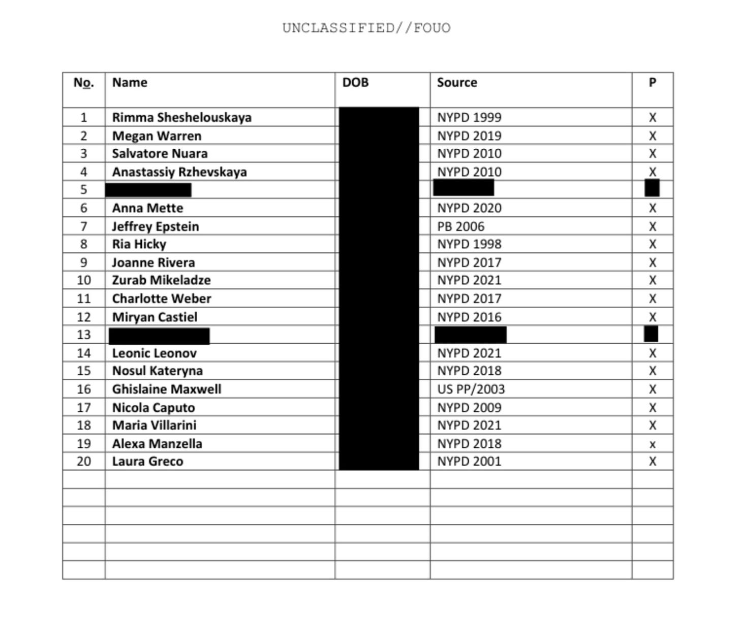 The DOJ is now unredacting documents that Congressman Thomas Massie called them out on after reviewing the unredacted version. This document below is a list of individuals, all of which was previously redacted: