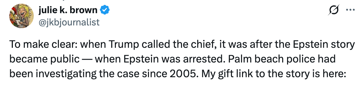 The only problem for the White House is that this phone call happened after the arrest of Epstein, not before. And so, now the White House is on record embracing the position that the President knew about Epstein and Maxwell’s conduct, yet only called authorities after Epstein was arrested: