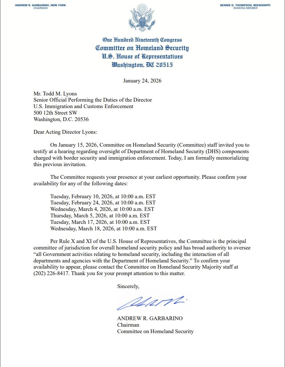 Meanwhile, congressional scrutiny is mounting from both parties. House Homeland Security Committee Chair Andrew Garbarino (R-NY) has formally requested testimony from the heads of ICE, Customs and Border Protection, and U.S. Citizenship and Immigration Services at a full committee hearing, according to the Washington Examiner.