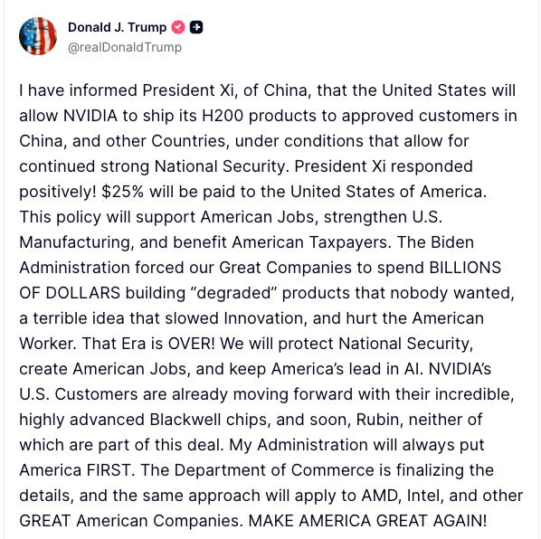 Trump has reversed Biden-era export restrictions and authorized Nvidia to sell its powerful H200 AI chips to “approved” buyers in China—part of a broader plan to let major US chipmakers resume business there while the government takes a financial cut—despite bipartisan concerns that the sales could bolster Chinese surveillance and military capabilities; the move follows intense lobbying from Nvidia CEO Jensen Huang and raises legal and national-security questions even as Nvidia and the White House tout it as beneficial for US jobs and industry.