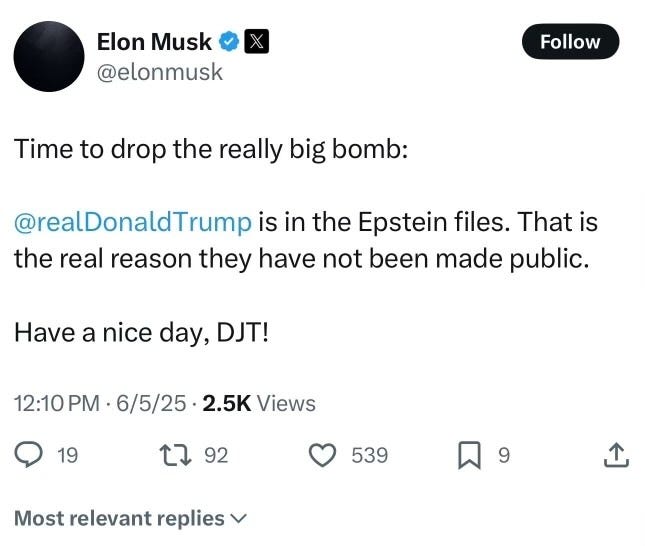 Then, the bombshell dropped. Elon Musk said that Donald Trump was named in the Epstein Files and that’s why they have not been released.