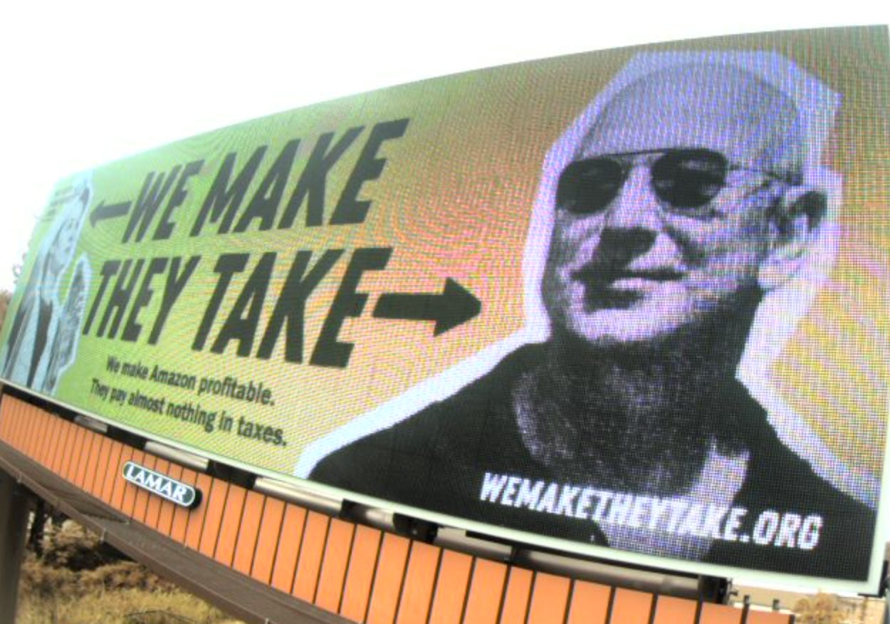 A massive billboard campaign across 9 states just launched with the common goal of telling Americans that America’s wealth is created by workers, yet taken away by elites. This working class versus billionaire class message is now on full display in states like Colorado, Michigan, Florida, and North Carolina. These billboards will be on display for several weeks as part the of “We Make, They Take” campaign and look like this: