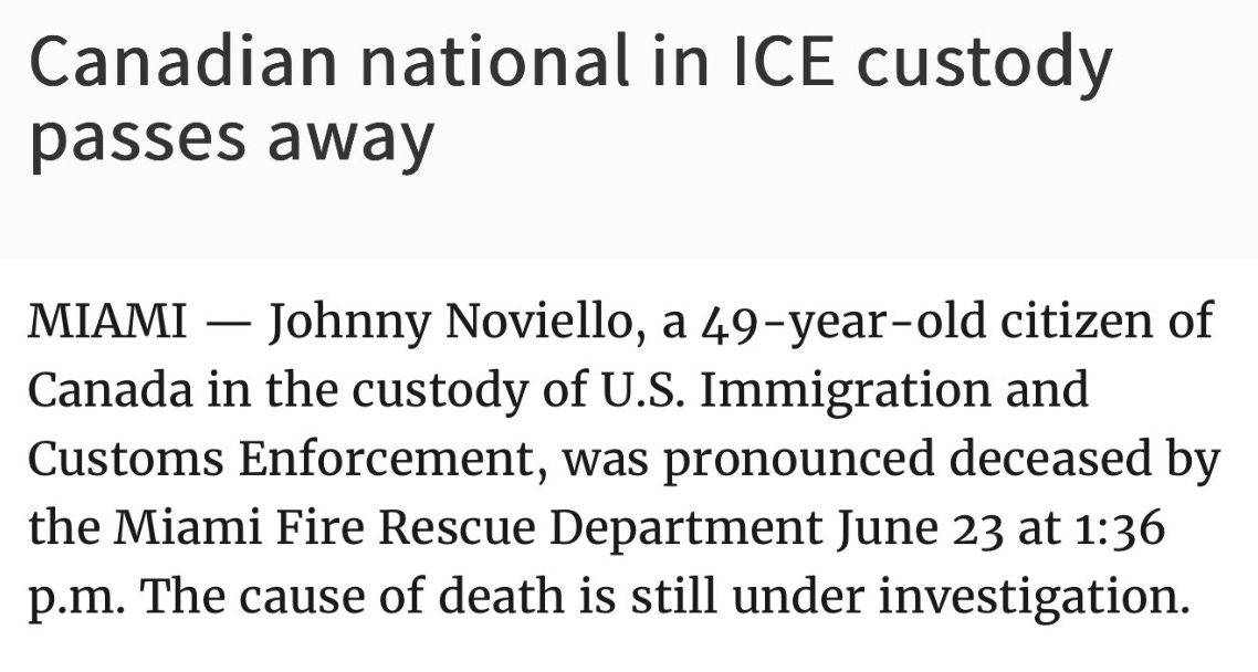 A 49-year-old Canadian citizen died while in ICE custody at the Federal Detention Center in Miami, authorities confirmed.