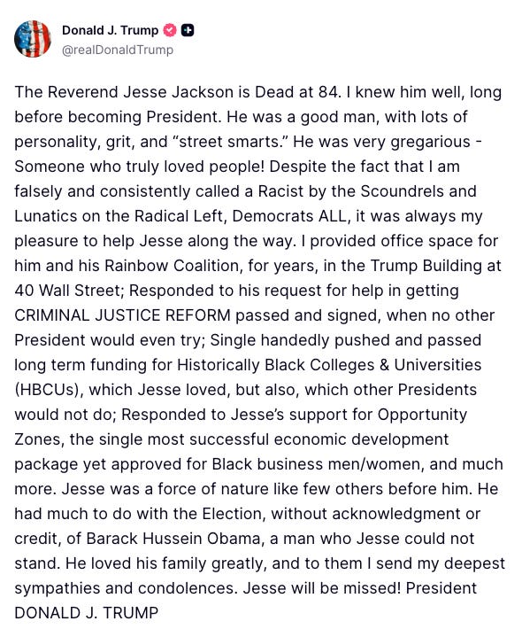 Donald Trump reacted to Jackson’s death: