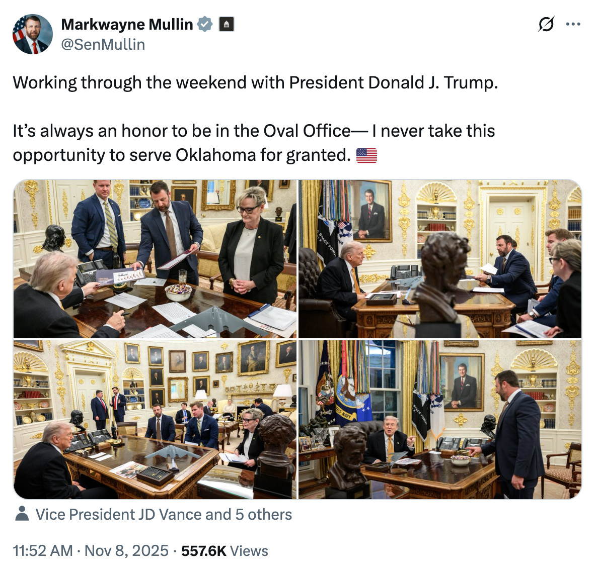 Republican Senator called out for misleading social media post suggesting that Trump and Senators were working this weekend. Donald Trump is not currently in Washington, D.C. He is currently at his golf club in Florida.
