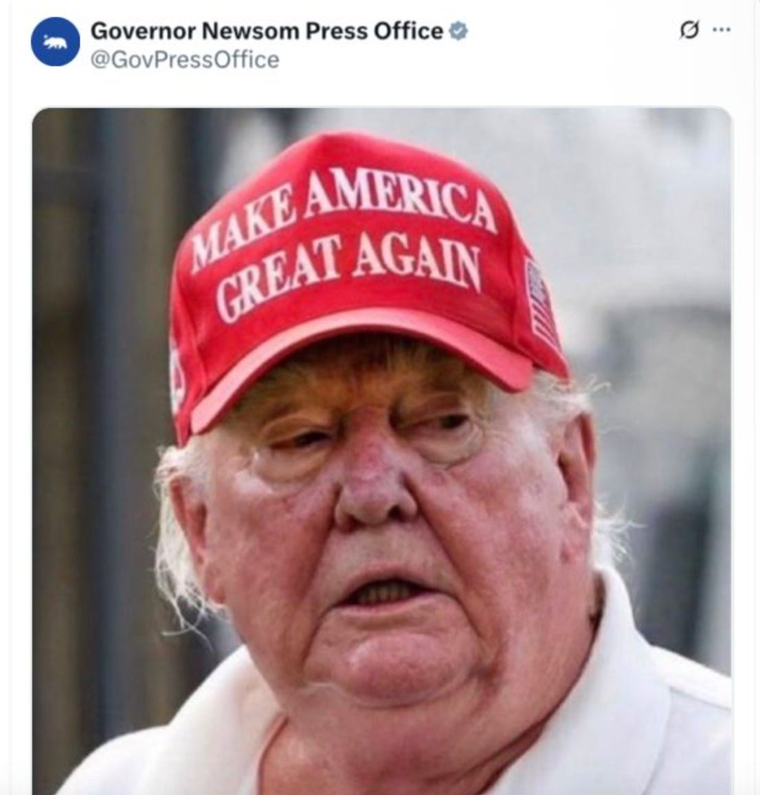 Shortly after Trump shared a distorted photo of Rosie O’Donnell with a threat to revoke her citizenship, California Governor Gavin Newsom’s official press account retaliated by posting a distorted photo of Trump.