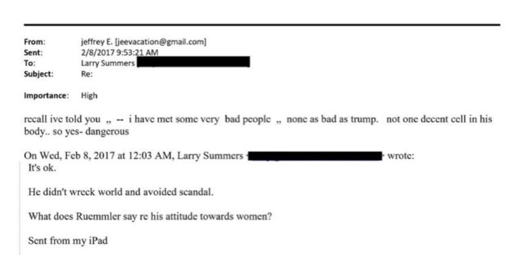 Jeffrey Epstein on Trump: “I have met some very bad people. None as bad as Trump. Not one decent cell in his body.”