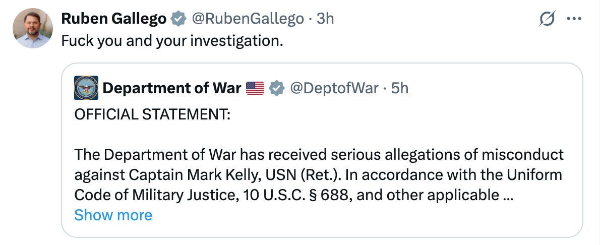Ruben Gallego responded with “fuck you and your investigation.”
