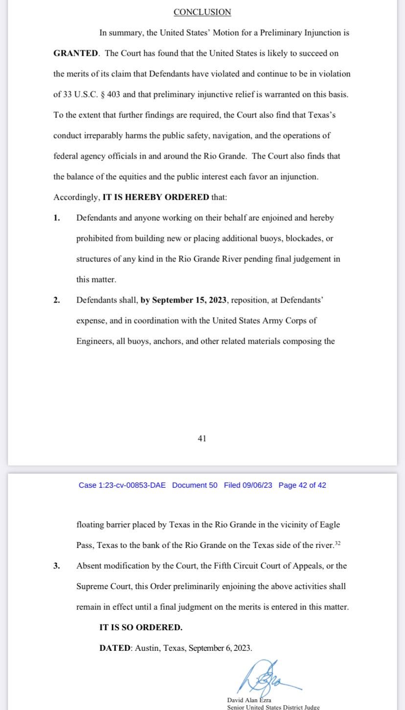 Greg Abbott, the Governor of Texas, suffered a major loss in court today as a federal judge ordered Abbott to remove the barriers and buoys he previously set up along the Rio Grande by September 15th and ordered that he cannot build anymore. These barriers perviously lead to the injury and death of multiple migrants and migrant children attempting to cross the border. Abbott, despite being called out for these inhumane policies, consistently double downed on these efforts. This is a temporary injunction and Texas will almost certainly appeal the ruling. However, for now, the buoys must be removed. Stay tuned as this case progresses in court.